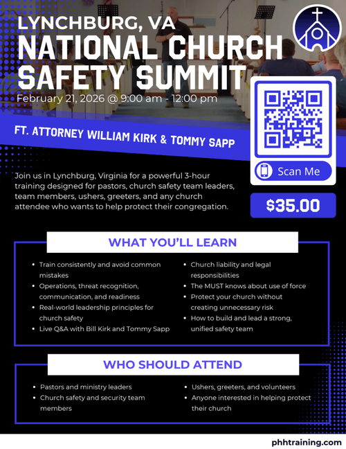 This training is designed to strengthen how we think, lead, communicate, and operate as a church safety ministry—legally, tactically, and spiritually.