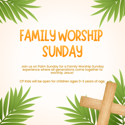 Family Worship Sunday is March 29th! All kids are welcome to join us in the sanctuary for service for a family worship experience.